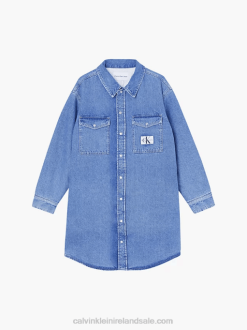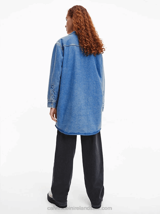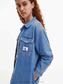 F64Z2417 Denim Light Women Calvin Klein Long Padded Denim Shirt Jacket