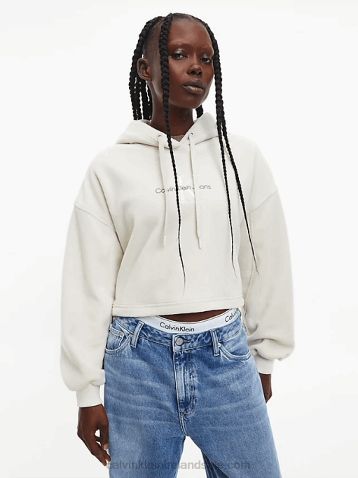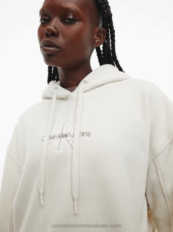 F64Z2419 Eggshell Women Calvin Klein Recycled Polar Fleece Hoodie