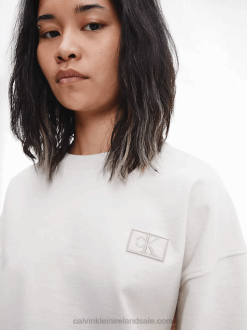 F64Z925 Vintage Ivory Women Calvin Klein Recycled Polyester Sweatshirt