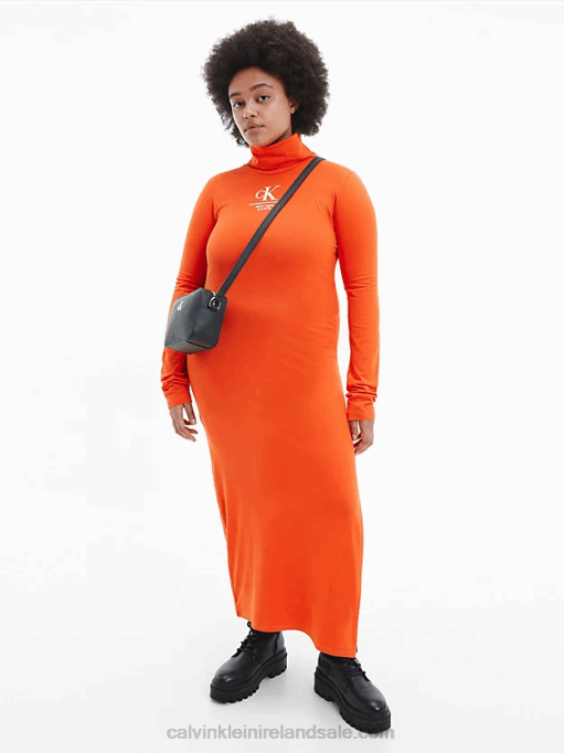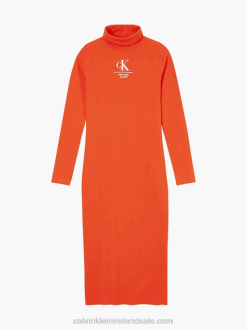 F64Z509 Bright White Women Calvin Klein Monogram Maxi T-shirt Dress