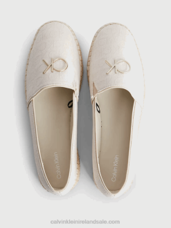 F64Z249 Neutral Mono Women Calvin Klein Recycled Logo Jacquard Espadrilles