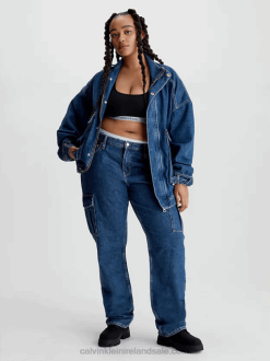 F64Z27 Denim Medium Women Calvin Klein Denim Zip Up Bralette Top