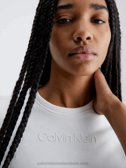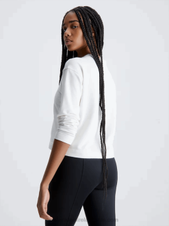 F64Z2518 White Suede Women Calvin Klein Cotton Terry Logo Sweatshirt