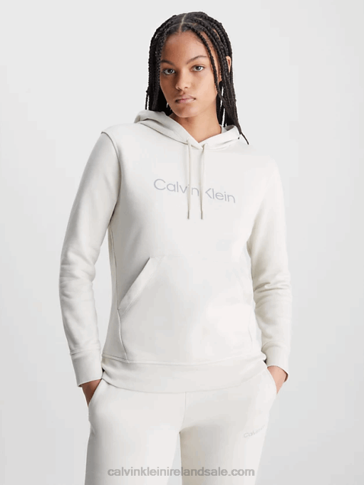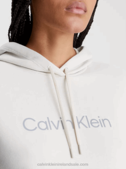 F64Z1313 Bright White Women Calvin Klein Cotton Blend Fleece Hoodie