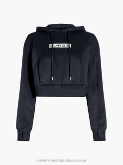 F64Z2563 Black/Bright White Women Calvin Klein Cropped Logo Hoodie