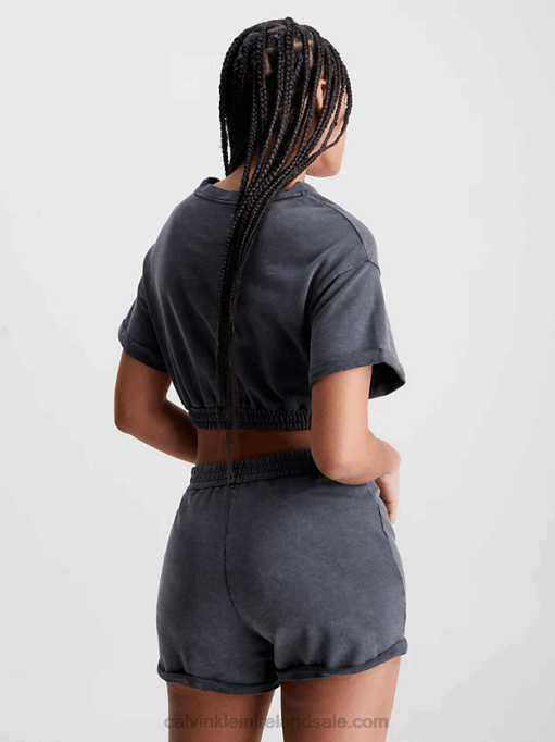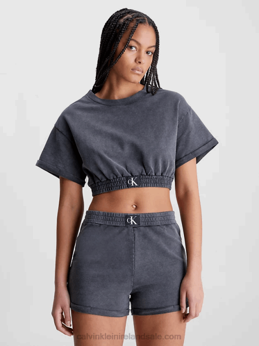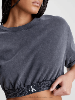 F64Z73 Black Women Calvin Klein Seersucker Stretch Cut Out Top