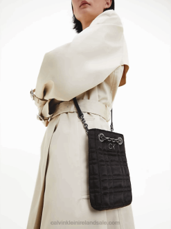 F64Z2656 Black Women Calvin Klein Recycled Velvet Phone Bag