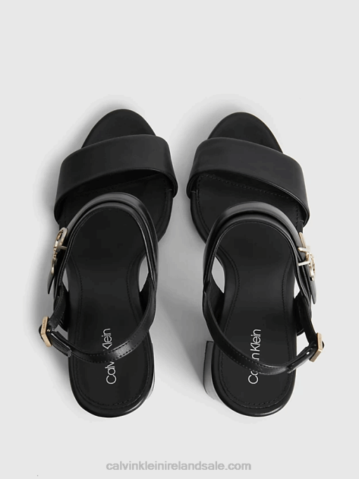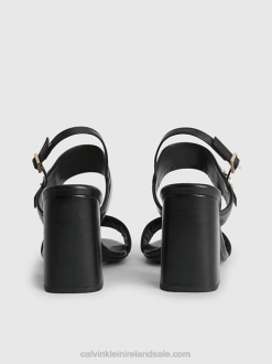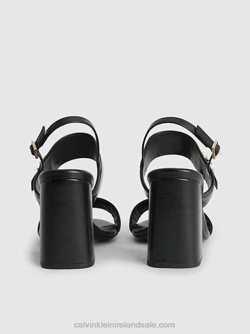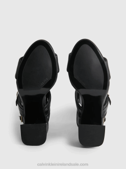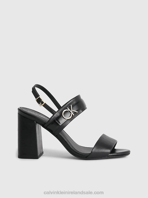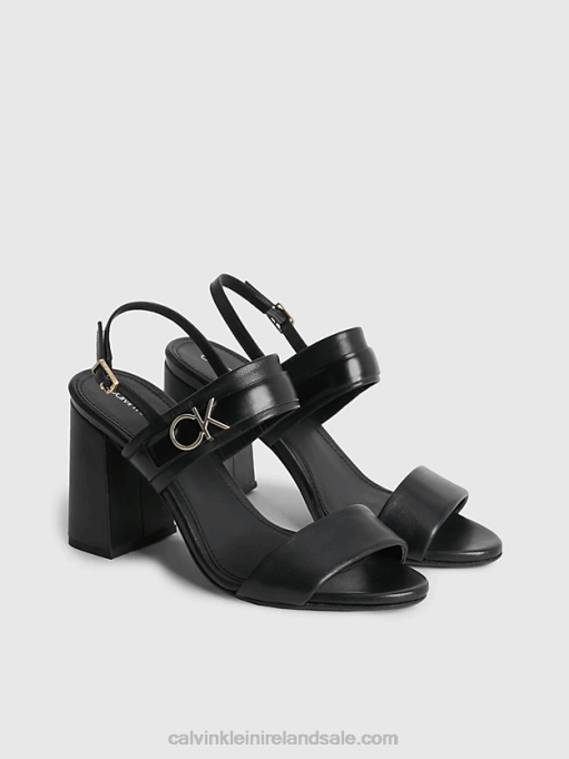 F64Z267 Black Women Calvin Klein Leather Heeled Sandals