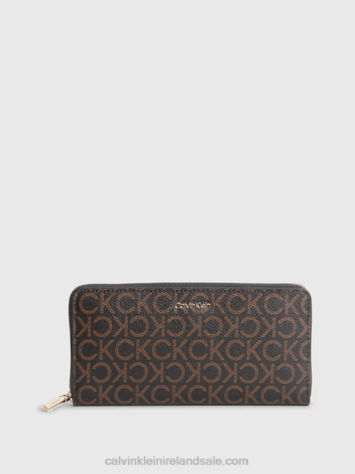 F64Z2743 Brown Mono Women Calvin Klein Large Recycled Zip Around Logo Wallet