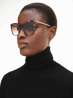 F64Z2786 Rose Tortoise Women Calvin Klein Rectangle Sunglasses