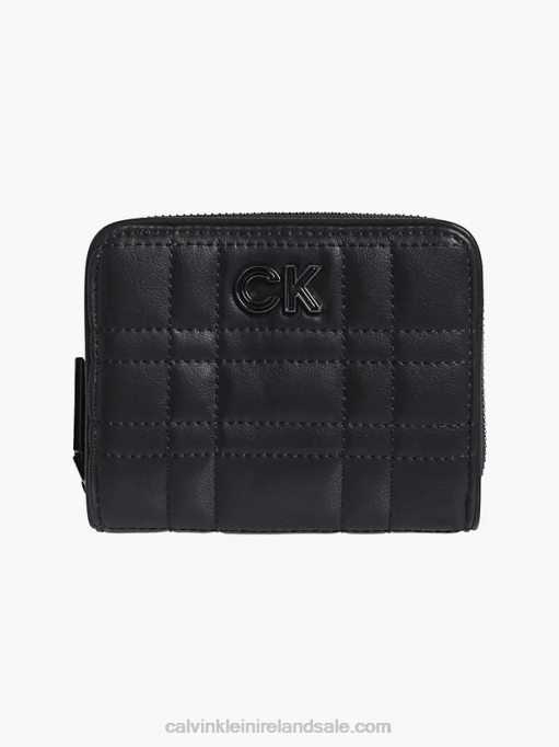 F64Z2799 Black Women Calvin Klein Recycled Quilted Zip Around Wallet