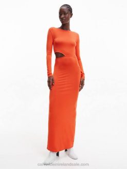 F64Z2326 Deep Orange Women Calvin Klein Cut Out Detail Bodycon Dress