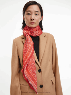 F64Z2820 Deep Orange Women Calvin Klein Logo Jacquard Scarf