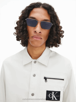 F64Z2857 Dark Ruthenium/Gray Women Calvin Klein Rectangle Sunglasses