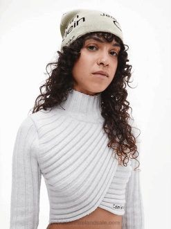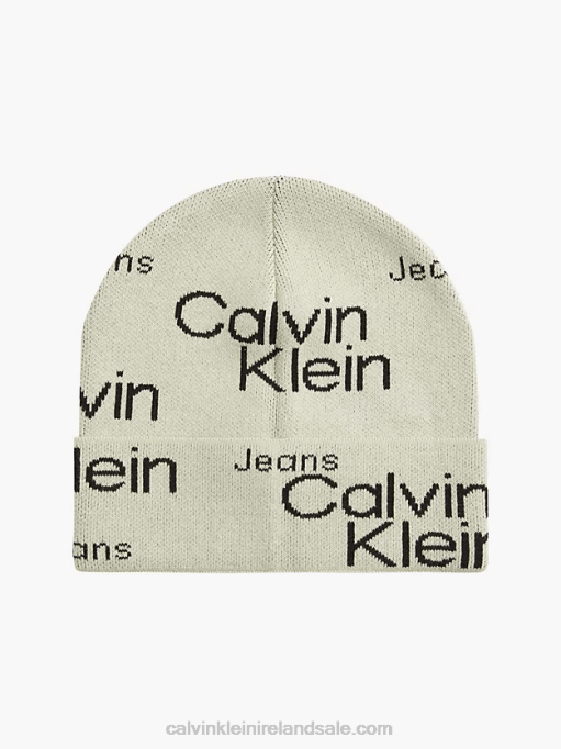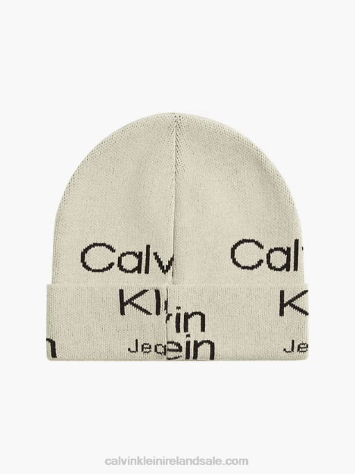 F64Z2863 Beige Aop Women Calvin Klein Organic Cotton Logo Beanie