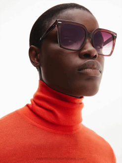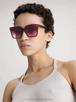 F64Z2882 Burgundy Women Calvin Klein Square Sunglasses