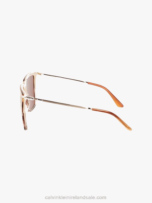 F64Z2885 Striped Brown Women Calvin Klein Rectangle Sunglasses
