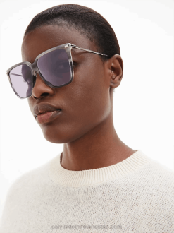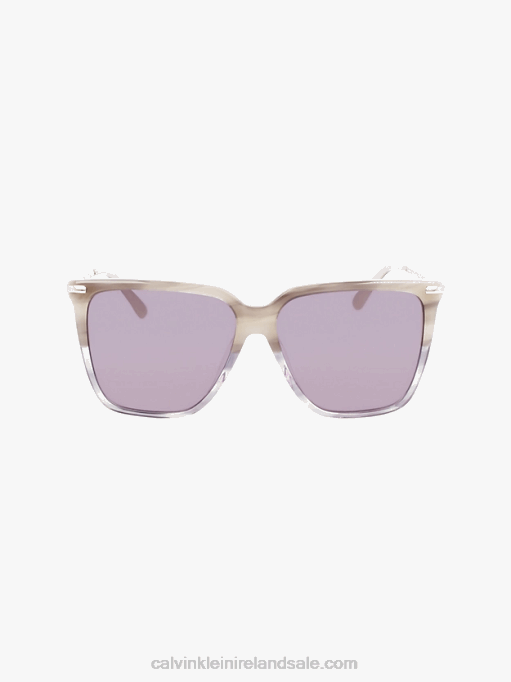 F64Z2887 Striped Grey Women Calvin Klein Rectangle Sunglasses