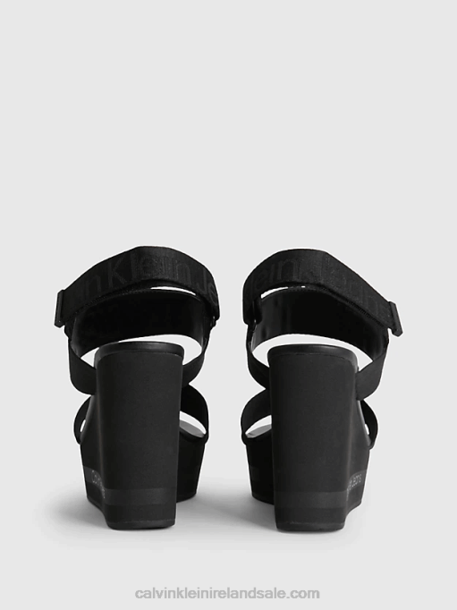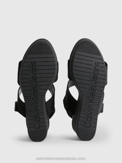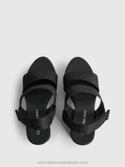 F64Z2952 Black Women Calvin Klein Recycled Logo Jacquard Wedge Sandals