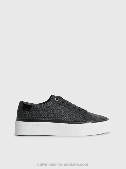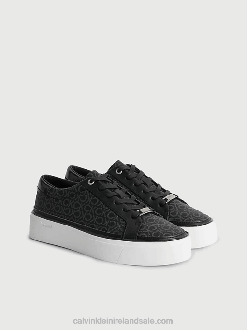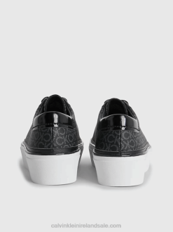 F64Z2971 Black Mono Women Calvin Klein Recycled Platform Logo Trainers