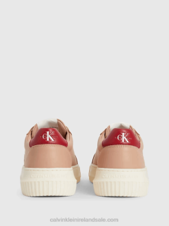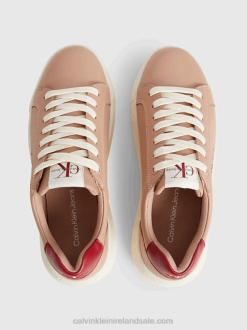 F64Z3005 Cafe Creme/Merlot Women Calvin Klein Leather Trainers