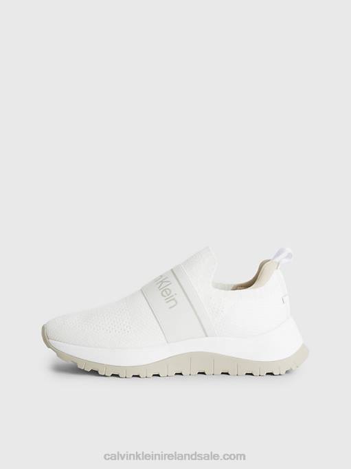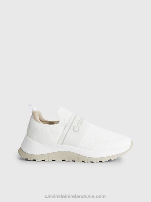 F64Z3009 White/Dk Ecru Women Calvin Klein Recycled Knit Slip-On Trainers