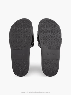 F64Z3012 Black Women Calvin Klein Recycled Patent Logo Sliders