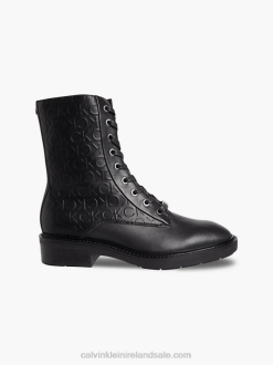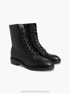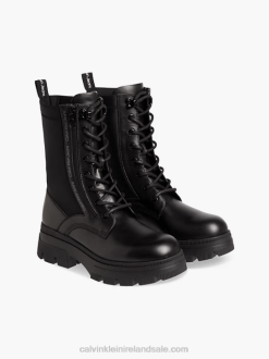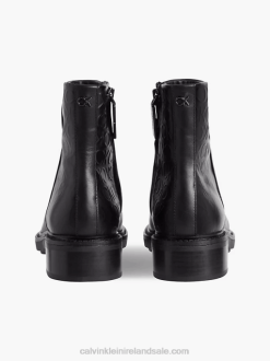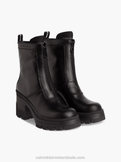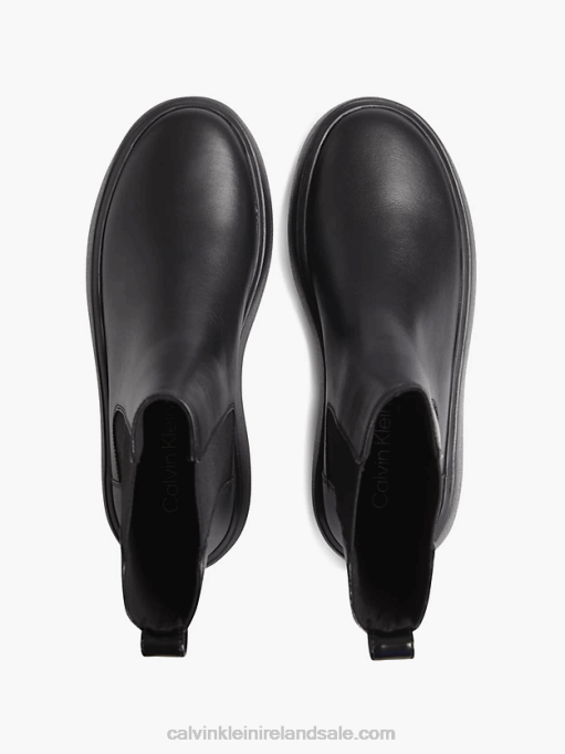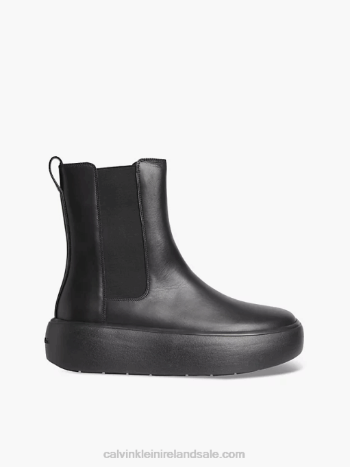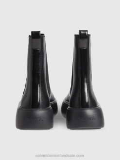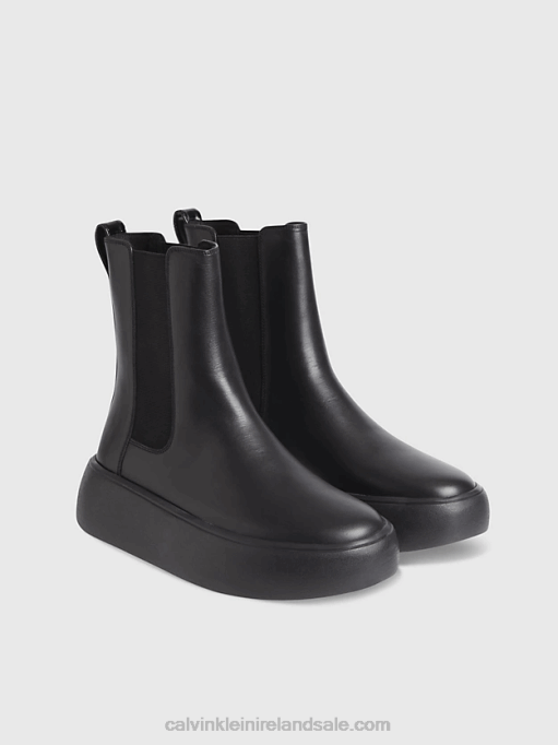 F64Z3024 Triple Black Women Calvin Klein Leather Bubble Platform Chelsea Boots