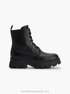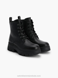 F64Z3024 Triple Black Women Calvin Klein Leather Bubble Platform Chelsea Boots