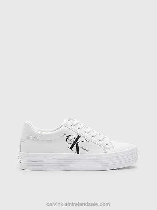 F64Z3032 Bright White Women Calvin Klein Leather Platform Trainers