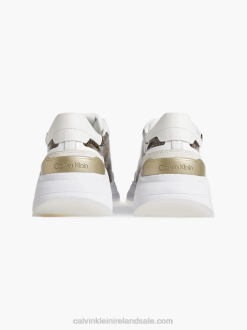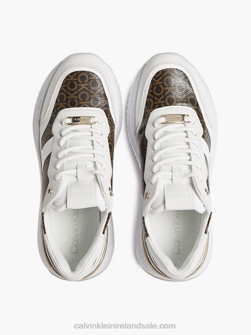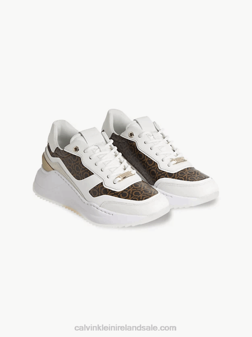 F64Z3033 White/Brown Mono Women Calvin Klein Logo Wedge Trainers