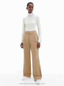 F64Z3059 Dk Ecru Women Calvin Klein Leather Trainers