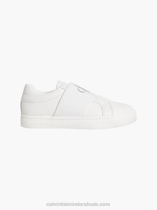 F64Z3072 White/Silver Women Calvin Klein Leather Slip-On Shoes