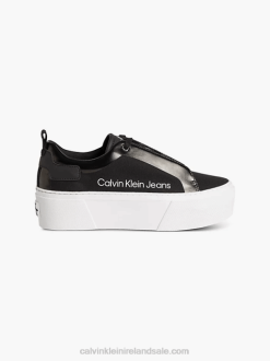 F64Z3127 Black Women Calvin Klein Recycled Canvas Platform Trainers