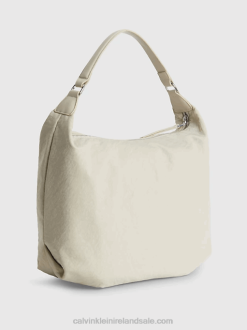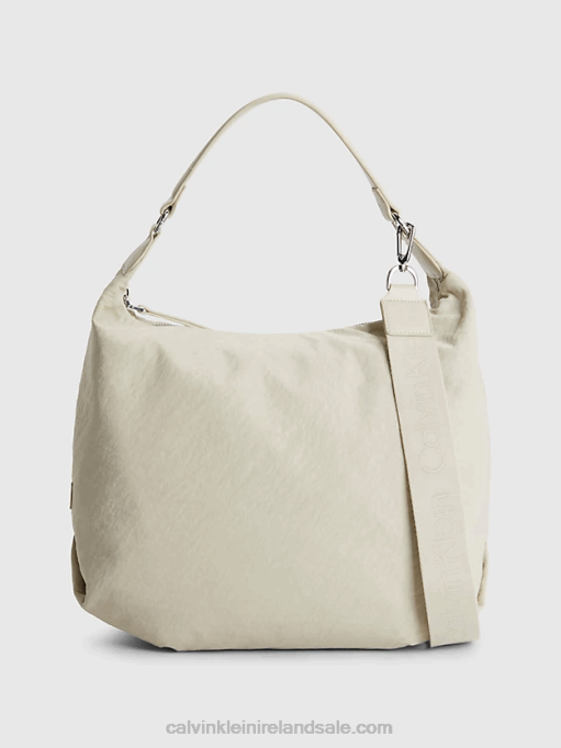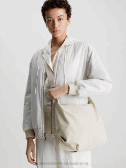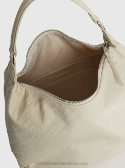 F64Z314 Stoney Beige Women Calvin Klein Recycled Nylon Hobo Bag