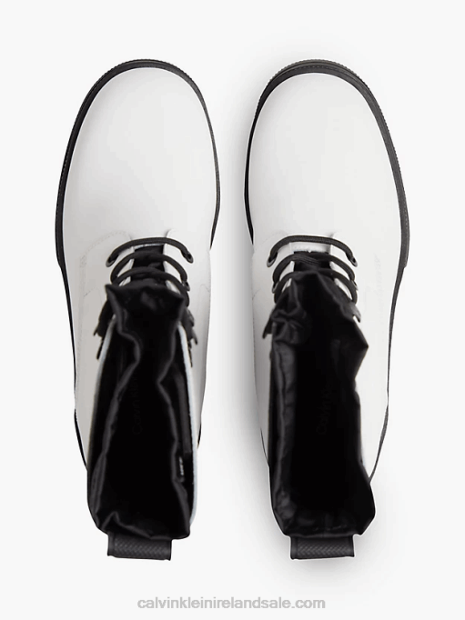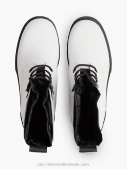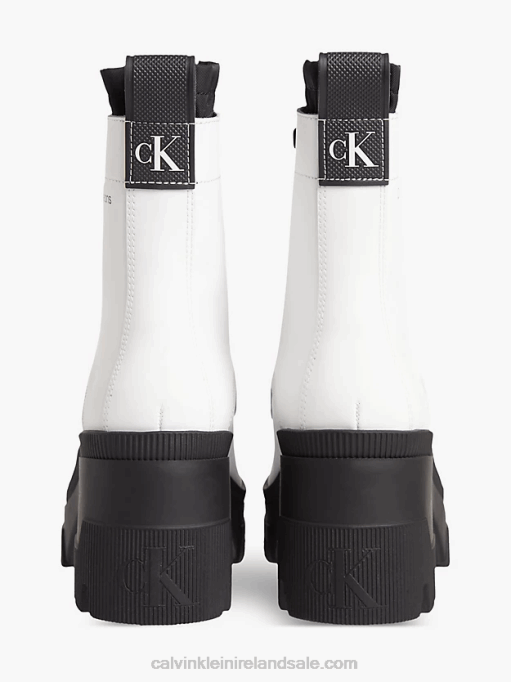 F64Z3145 Bright White Women Calvin Klein Leather Chunky Heeled Boots