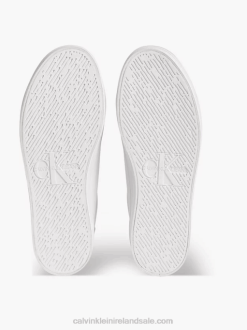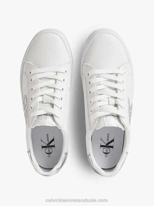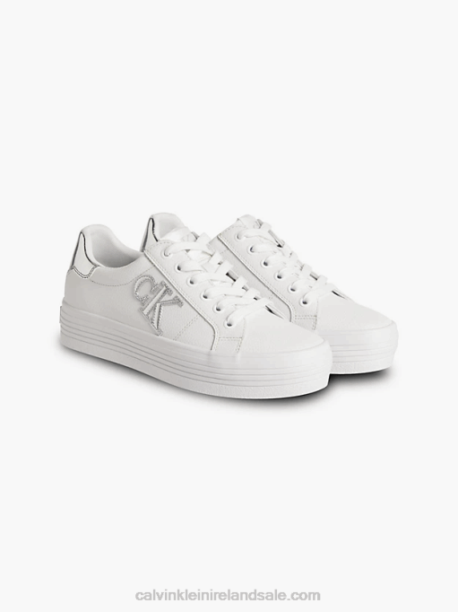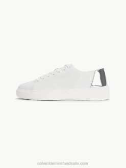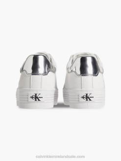 F64Z3148 White/Silver Women Calvin Klein Leather Platform Trainers