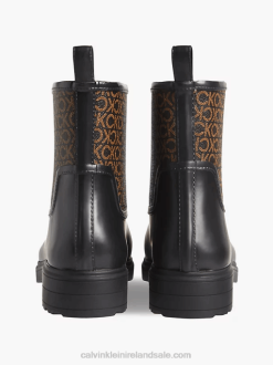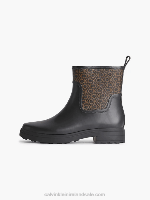 F64Z3184 Black/Brown Mono Women Calvin Klein Logo Rain Boots