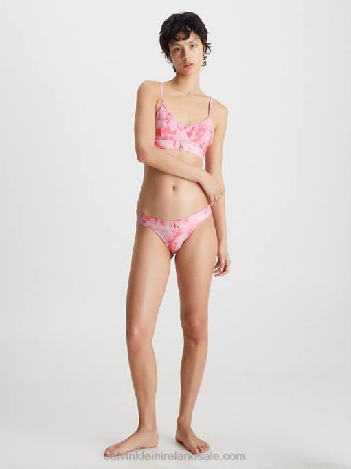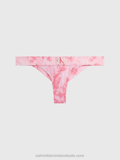 F64Z3257 Tie Dye Pink Aop Women Calvin Klein Brazilian Bikini Bottoms