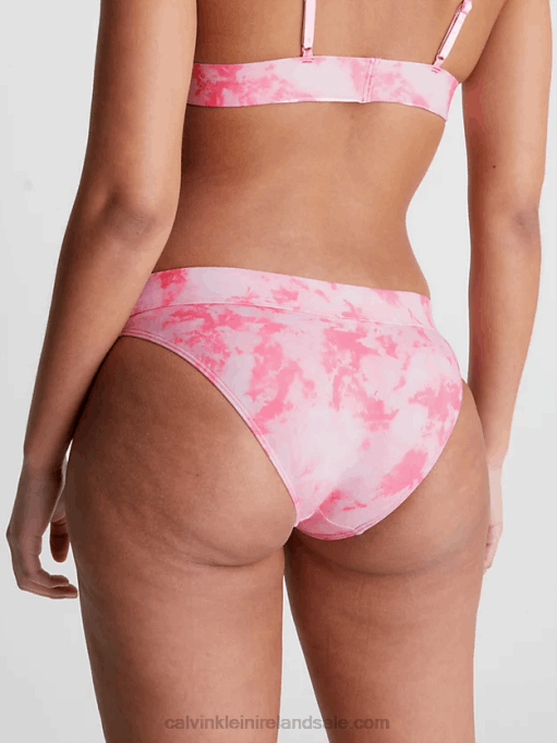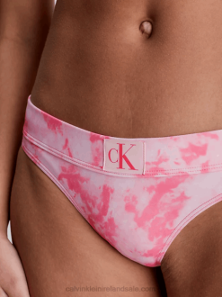 F64Z3258 Tie Dye Pink Aop Women Calvin Klein Bikini Bottoms