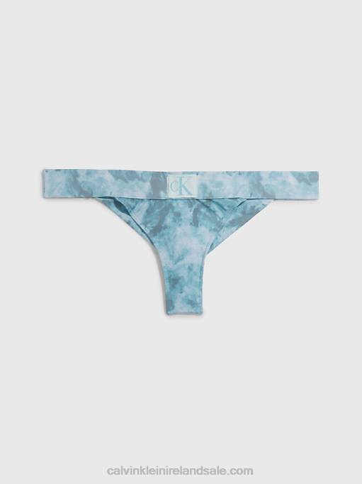 F64Z3263 Tie Dye Blue Aop Women Calvin Klein Brazilian Bikini Bottoms