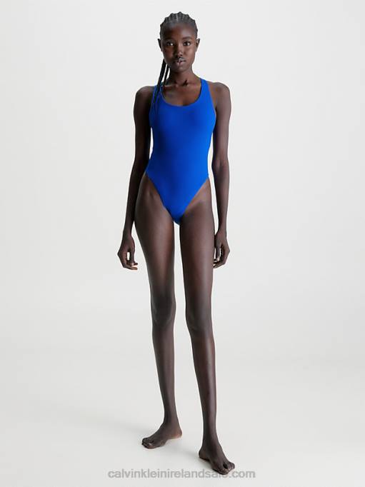 F64Z3307 Ultra Blue Women Calvin Klein Cross Back Swimsuit