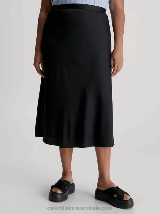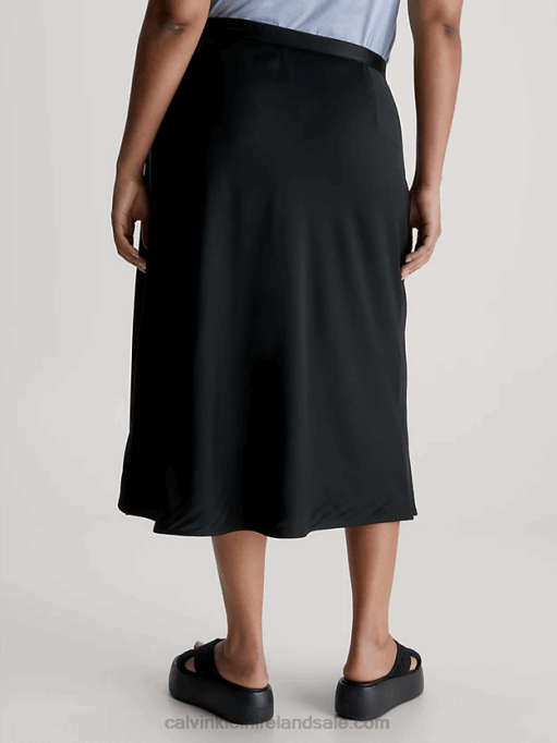 F64Z334 Black Women Calvin Klein Plus Size Crepe Midi Skirt