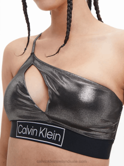 F64Z3349 Pvh Black Women Calvin Klein One Shoulder Bikini Top