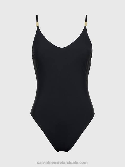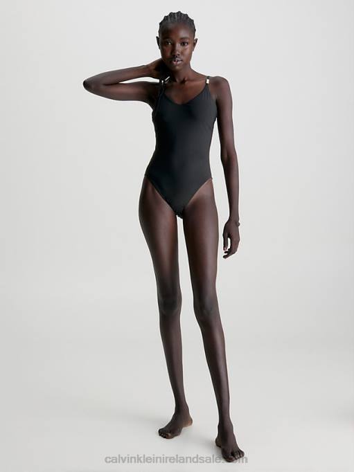 F64Z3363 Pvh Black Women Calvin Klein Open Back Swimsuit