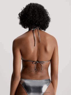 F64Z3366 Silver Women Calvin Klein Triangle Bikini Top