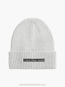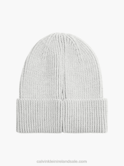 F64Z3389 Grey Fog Men Calvin Klein Wool Blend Beanie