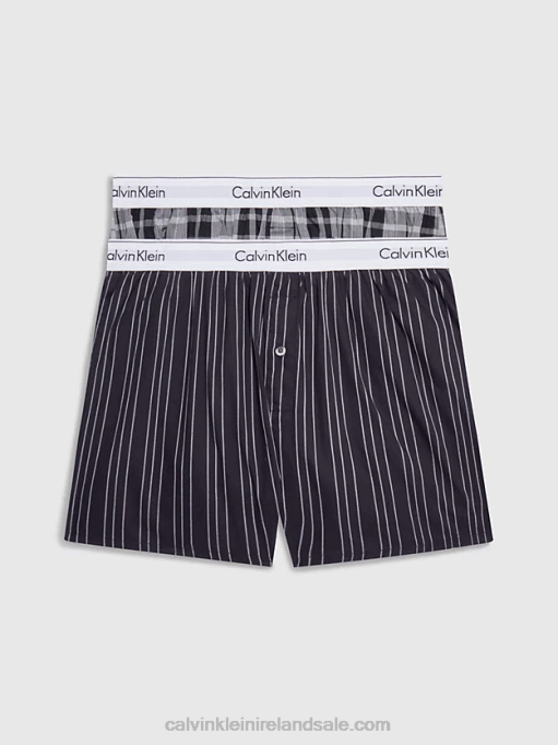 F64Z3456 Ryan Stripe D Well/Hickory Plaid B Men Calvin Klein 2 Pack Slim Fit Boxers