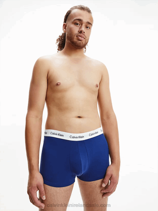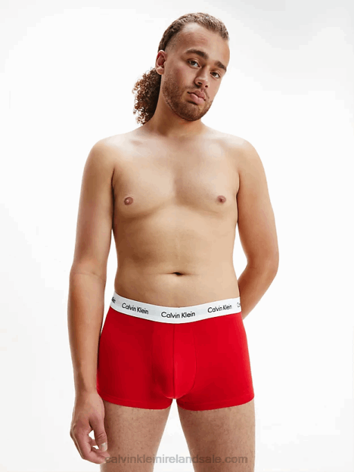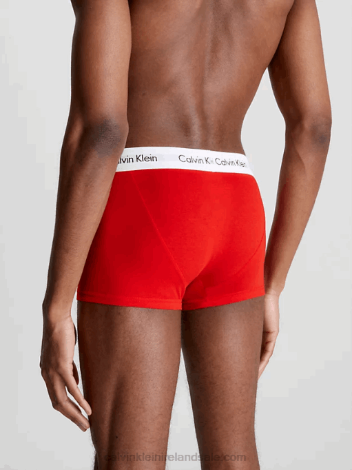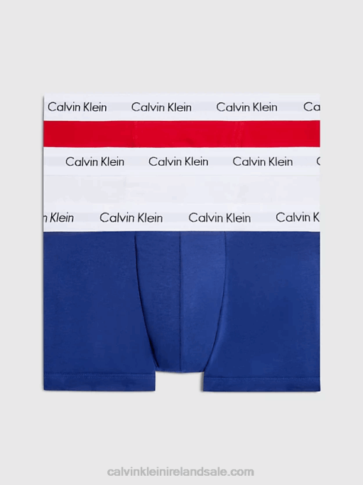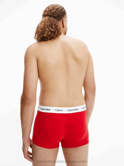 F64Z3497 White/Red Ginger/Pyro Blue Men Calvin Klein 3 Pack Low Rise Trunks