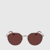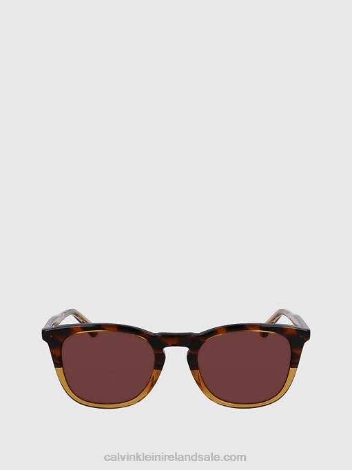 F64Z356 Brown Havana Women Calvin Klein Round Sunglasses